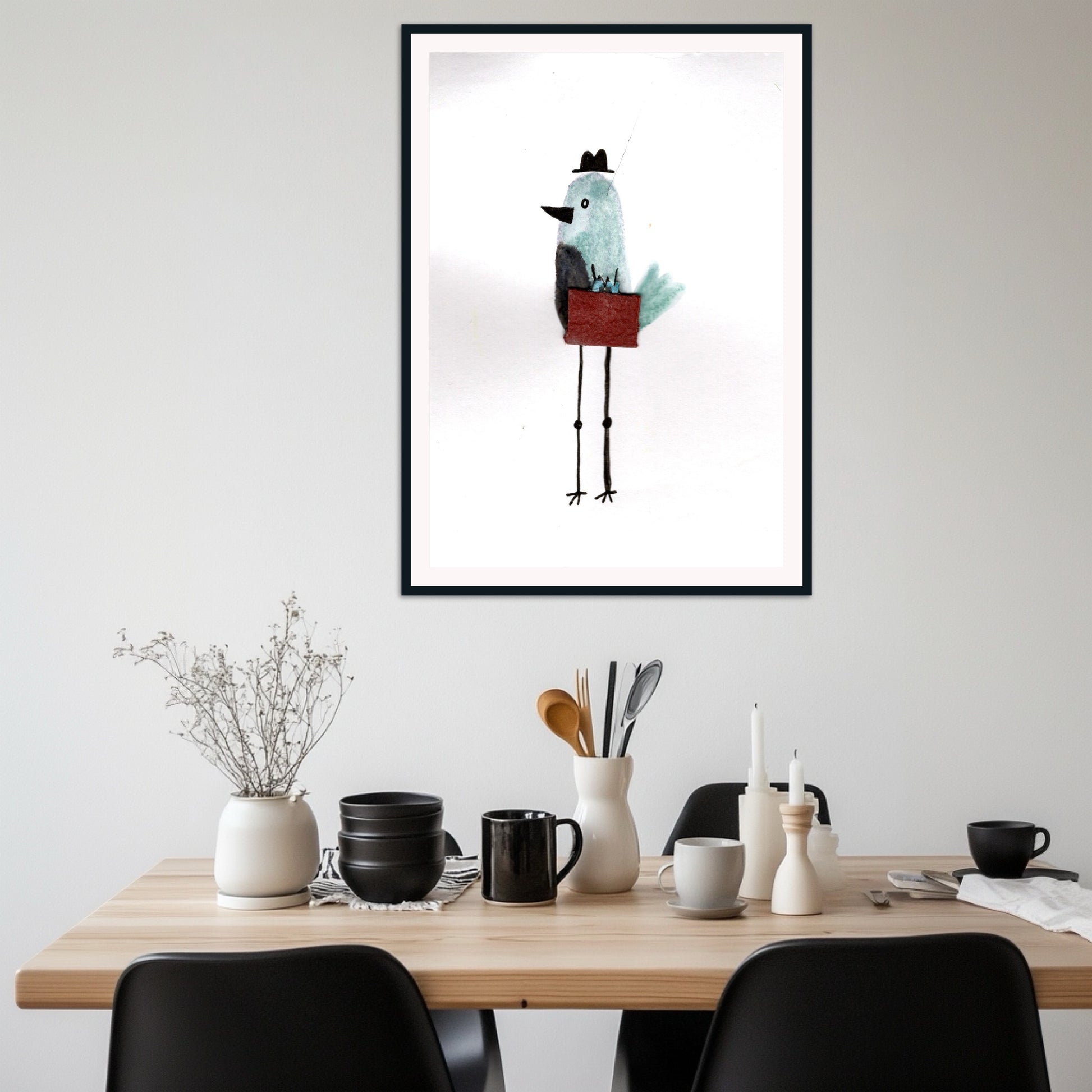 Printed on archival-quality paper, this high-resolution art print captures the delightful details of the original piece. It’s the perfect gift for coworkers, bird lovers, or anyone who appreciates clever, light-hearted art.